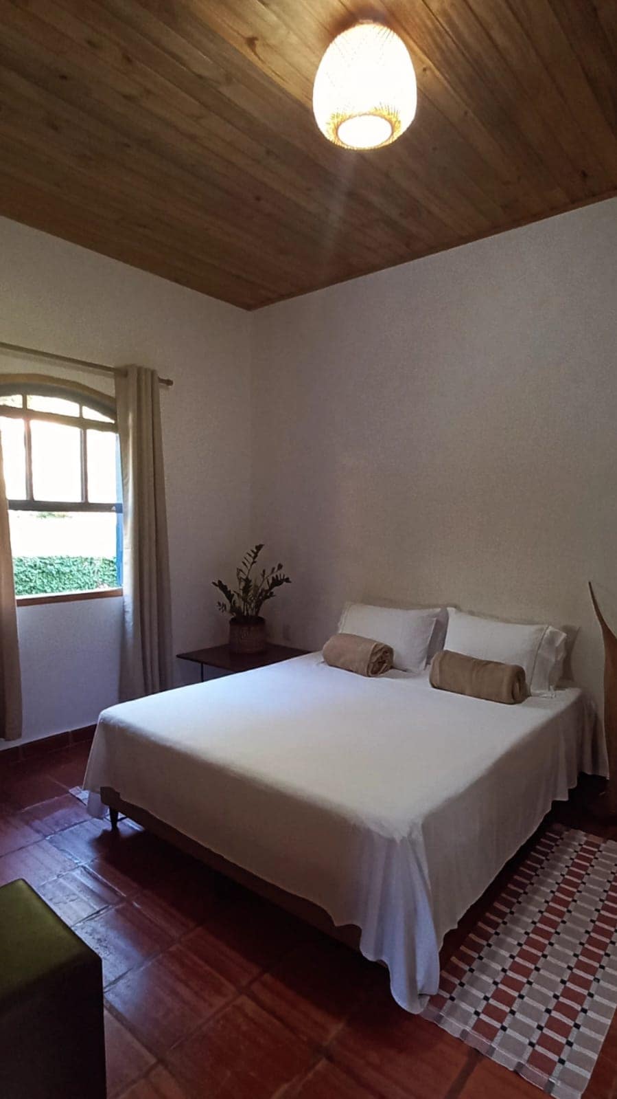 O Chalé Suíte "07" está localizado no piso superior do Chalé estilo Colonial. Chalé com quarto e cozinha americana estilo suíte, com vista para as montanhas da Serra Itapetinga, Pedra Grande e o vale da Fazenda Santana, dentro do Sítio Águas Verdes. Atende de 2 a 3 hóspedes. Possui cama de casal e uma de solteiro, geladeira, WC, 01 vaga para carro. A Piscina é de uso compartilhado e fica ao lado dos demais chalés da área de hospedagem. Ótima opção para quem gosta de refúgio em clima de montanha.