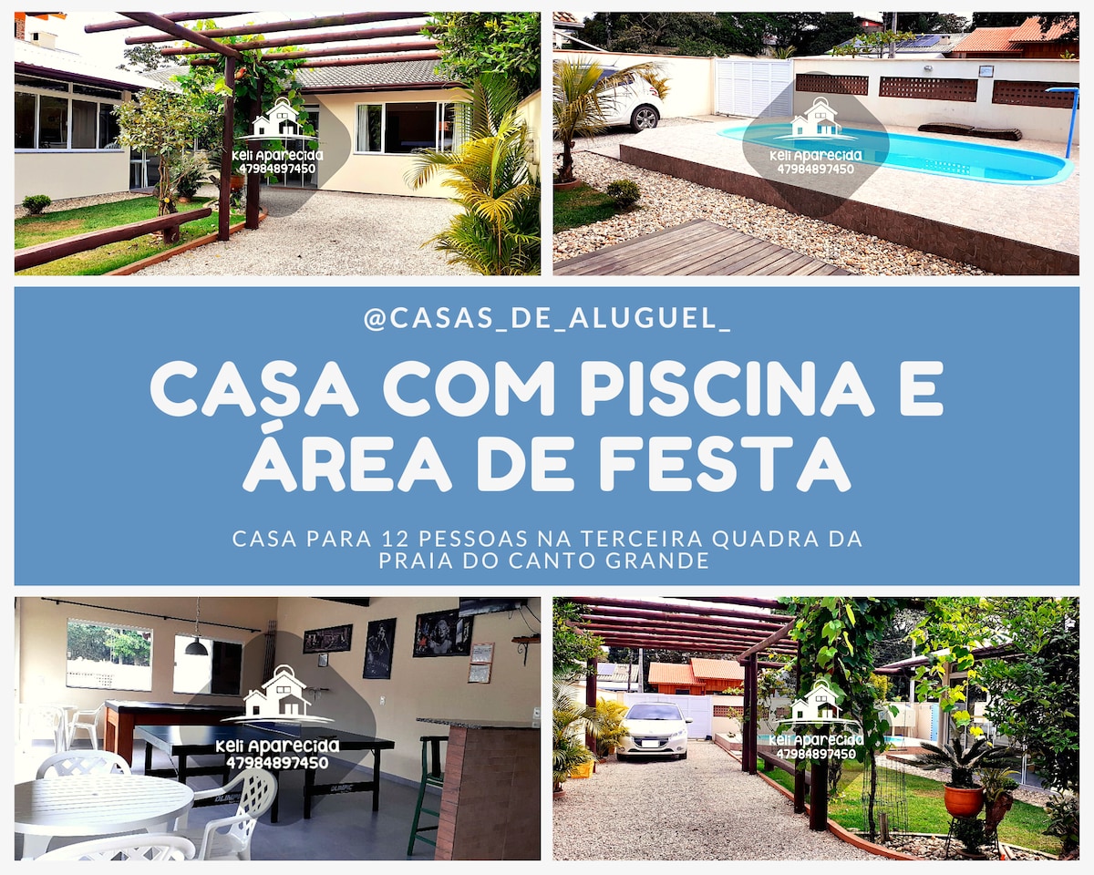 Casa com cozinha e churrasqueira muito bem equipada (mesmo), fazendo você se sentir no conforto do seu lar. Fornecemos ROUPAS DE CAMA e TOALHAS DE BANHO. Há maquina de lavar, varal e ferro de passar. Fica na rua Massaranduba entre duas praias de canto grande - 50m do mar de fora e 200m do mar de dentro. Ar condicionado em ambos os quartos com ventilador de teto. Tv box com 200 canais disponíveis e wifi 1000 MEGA. Possui 5 boas cadeiras de praia e um ótimo guarda-sol para curtirem a praia.