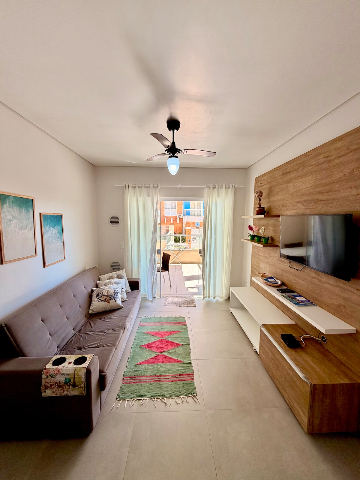 Flat ideal para casais, localizado a apenas 200 metros da Praia de Bombas. Oferece uma experiência completa em um ambiente aconchegante e bem equipado. Desfrute da infraestrutura de condomínio com piscina, área gourmet e varanda, além do conforto do apartamento: cama queen-size, cozinha totalmente equipada, ar-condicionado, sala de estar, televisão no quarto e sala, máquina de lavar roupa, banheiro e sacada com churrasqueira para momentos especiais.