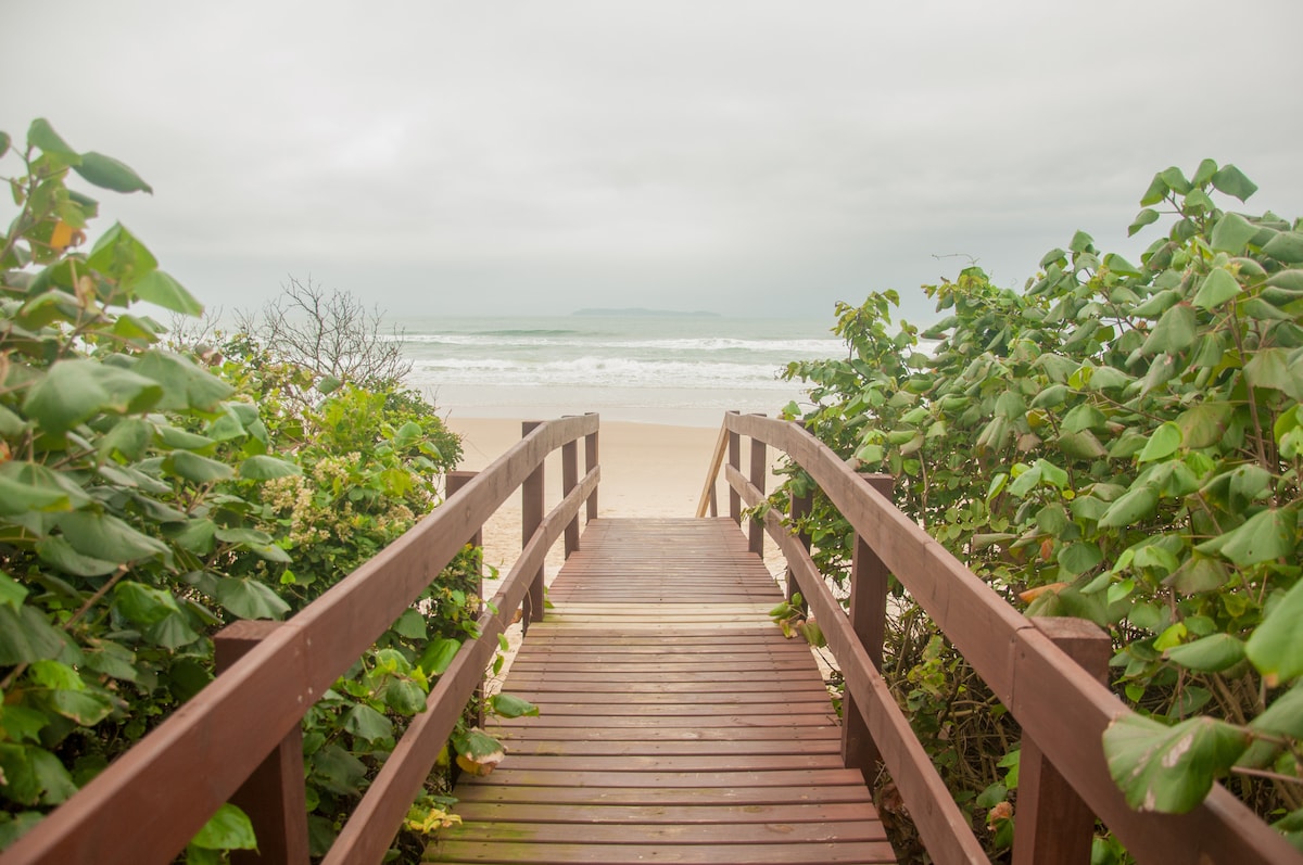 Feet in the sand. House accommodates 8 people in beds, 3 with single mattresses. Seafront house with 4 suites in Bombinhas, ideal for families and groups. It offers comfort, privacy and a privileged location, with direct access to the beach. Modern spaces, fitted kitchen and balcony with stunning views. Close to restaurants, shops and local attractions, it is the perfect setting for an unforgettable vacation on the Santa Catarina coast. Book now and enjoy the best of Bombinhas!