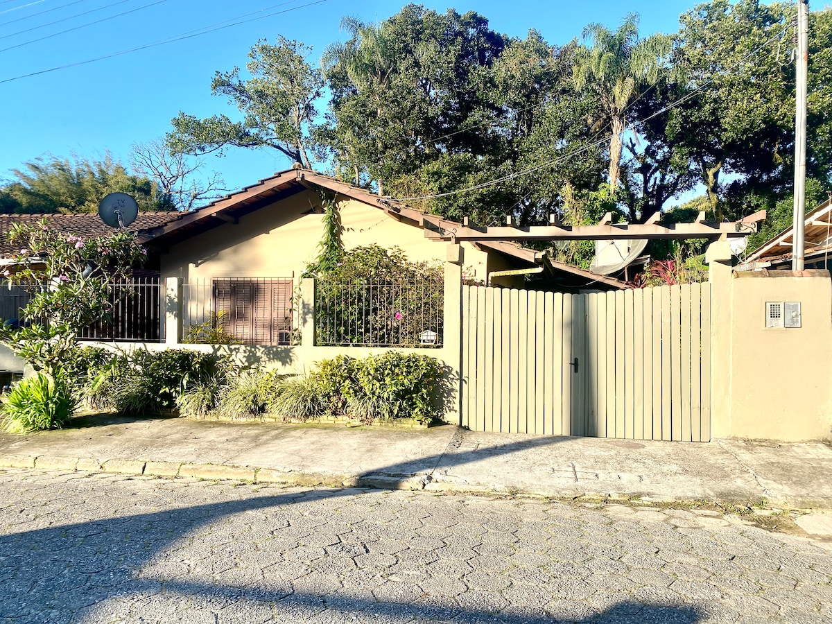 Casa aconchegante a 200m da Praia de Zimbros 🌴🏖️ Desfrute de dias incríveis hospedando-se em uma casa confortável, perfeita para momentos de descanso em família. Possui 2 dormitórios (ambos com ar-condicionado), 1 banheiro, sala e cozinha integrado, smart TV, WI-FI, área de churrasqueira e 2 vagas de estacionamento. Acomodação para até 6 pessoas. Cozinha equipada com utensilio necessário para sua comodidade. Os proprietários moram na casa da frente (foto) proporcionando maior segurança