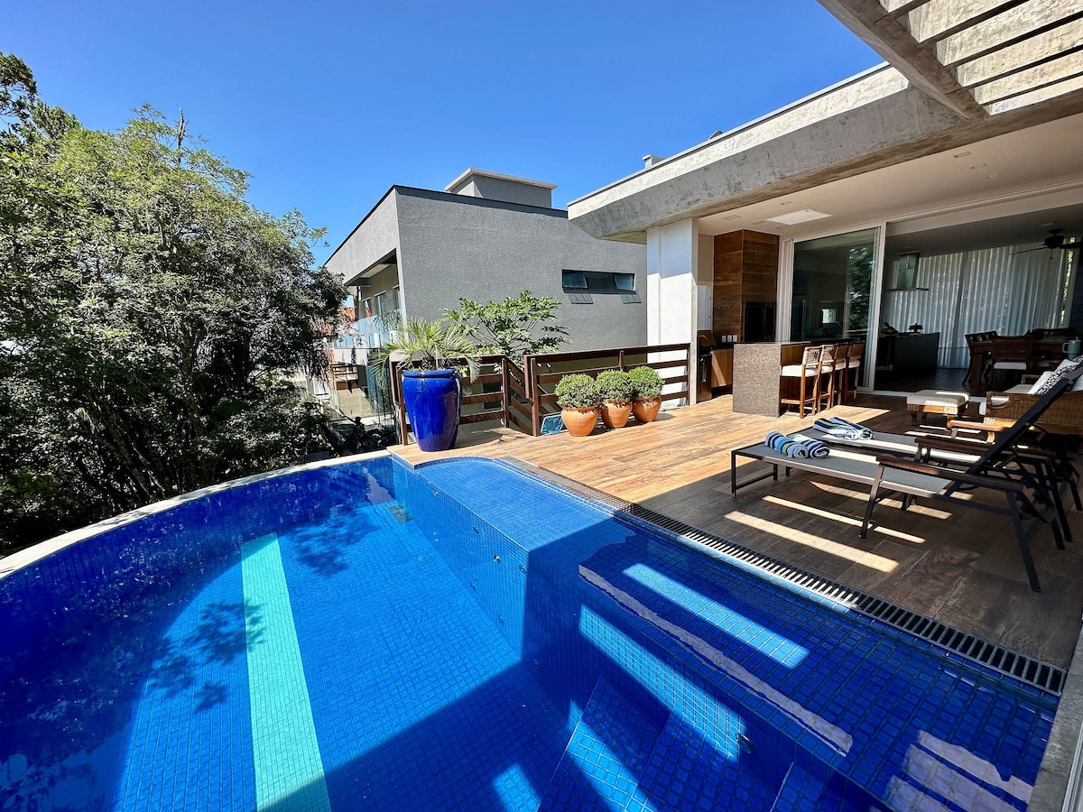 Triplex beira mar na praia de Bombas com churrasqueira privativa na cobertura e piscina coletiva. PÉ NA AREIA, literalmente. Uma das melhores opções de Bombas para quem busca uma localização exclusiva, aliada à comodidade de estar com o pé na areia. Você vai desfrutar de momentos inesquecíveis com sua família e amigos. A poucos metros de bares e restaurantes. Vista exuberante dos três andares para você apreciar a praia e bela natureza do costão de Bombas. Ar-condicionado nos 4 quartos