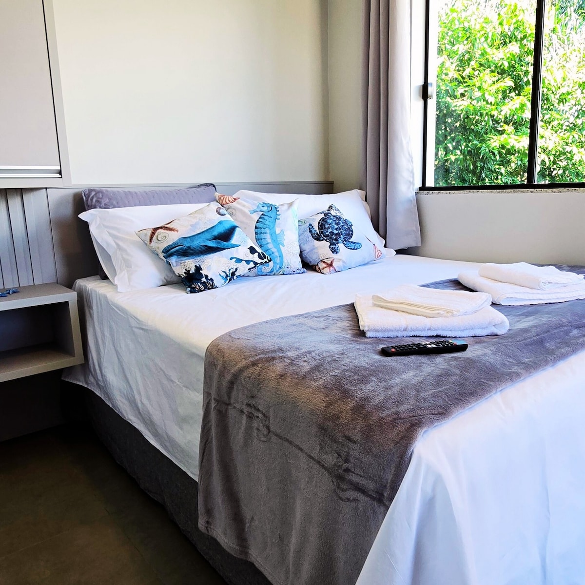 Aproveite a tranquilidade, aconchego e simplicidade desta acomodação. Conta com uma cozinha compacta com todos os utensílios necessários, microondas, chaleira elétrica, cafeteira elétrica, grill e sanduicheira, ar condicionado, tv, internet, cama de casal, com roupas de cama e banho. Cadeiras e guarda-sol. Estamos localizados a 400 metros da Praia de Zimbros. Nosso objetivo é que hóspedes relaxen e curtan neste lugar único e tranquilo.