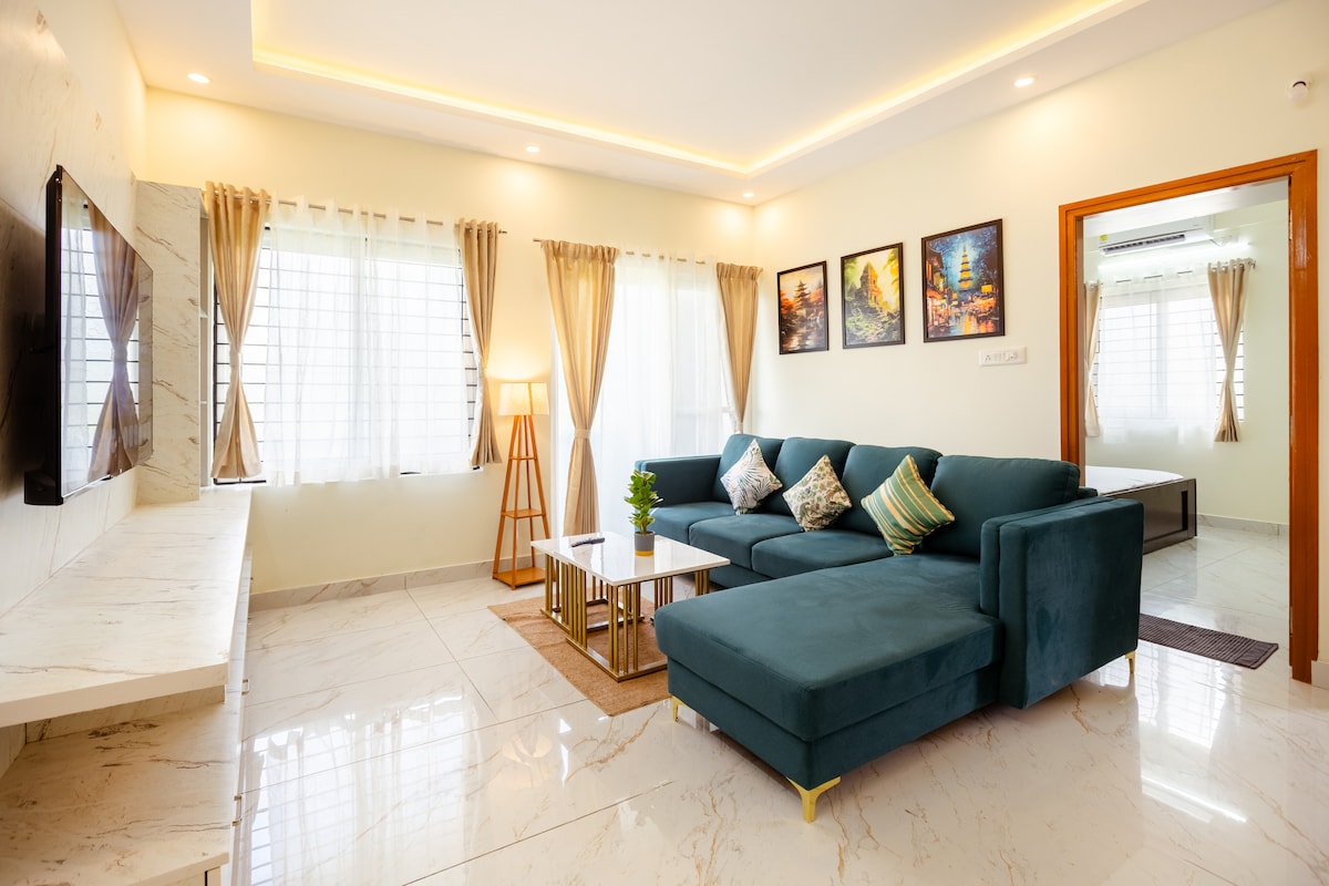 Welcome to Cozy Olive, a stylish green‑themed 1BHK on Neeladri Road, Electronic City. Nestled in a gated premium community, this eco‑friendly retreat offers comfort, security, and modern amenities. Relax in soothing olive interiors, enjoy a fully equipped kitchen, high‑speed Wi‑Fi, and premium furnishings. Perfect for business travelers or couples, Cozy Olive blends nature, convenience, and serenity for a refreshing Bangalore stay.