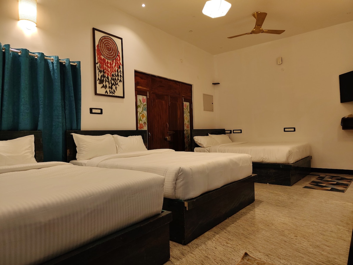 Relax with the whole family at this peaceful place to stay.beverages will be offered complimentrely.food according to the customer preference at their own cost.visit our place for your best experience.