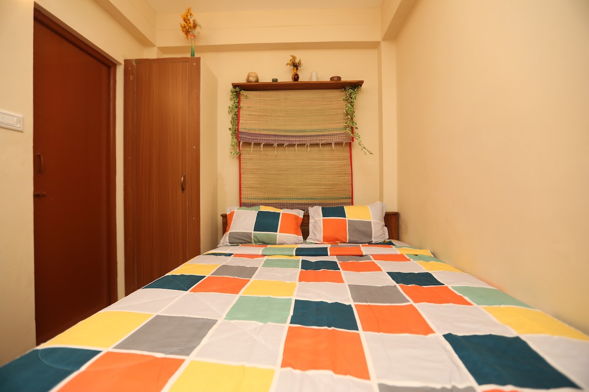 🌈The listing is for a cozy bedroom🛌 with a queen size bed and an attached bath with a couple sized bathtub 🛁 and all amenities for your comfortable stay 😍. The washrooms are designed on the lines of Balinese architecture🛖 to make you feel like you're in Bali🇮🇩 You can lay back on your bed and watch your favourite series📺and take a nice hot relaxing bubble bath🛀 with a glass of your fav drink🥂 and truly fall into that holiday state of mind..! 🥳