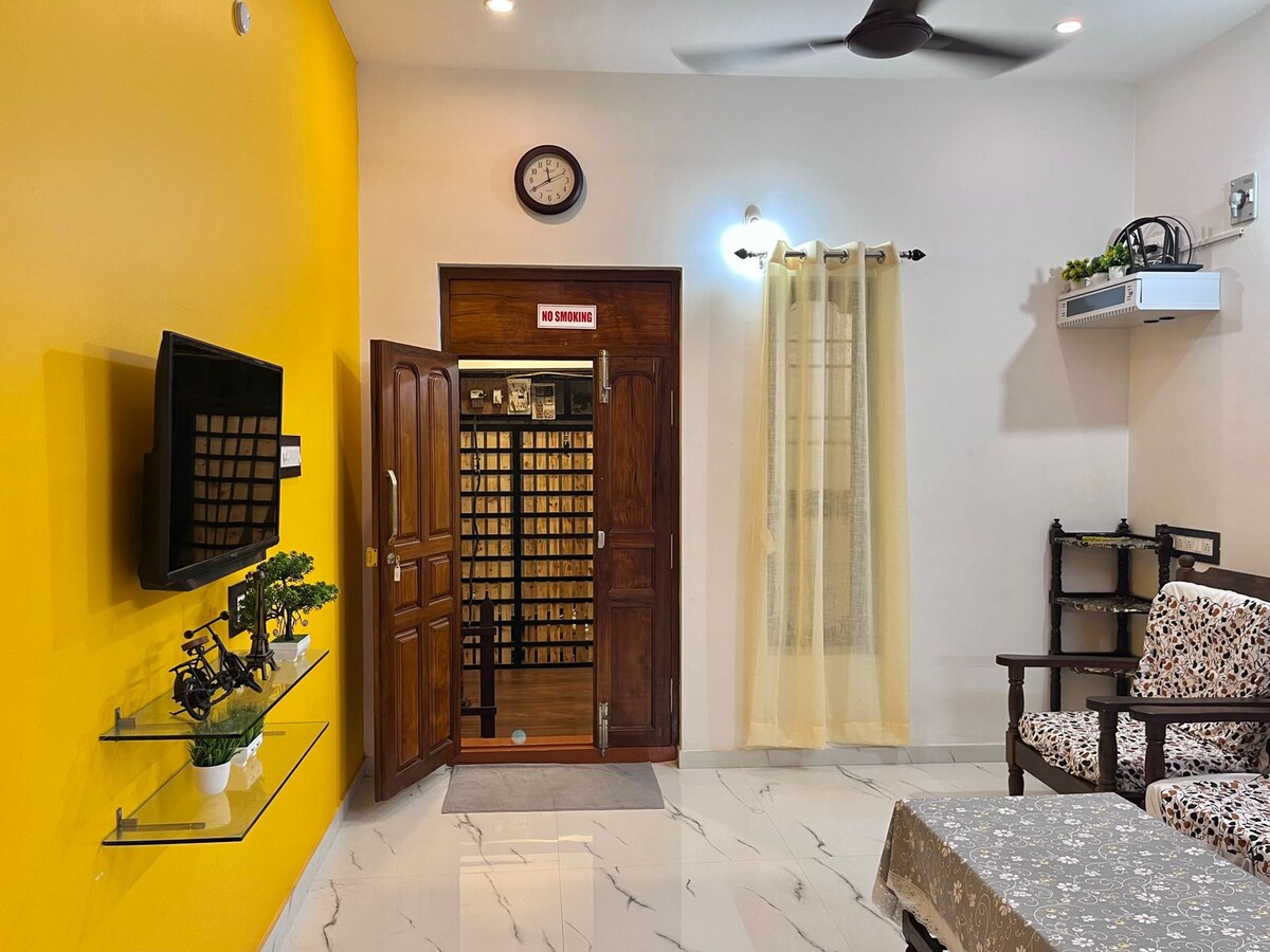 Our homestay in Pondicherry, offers a comfortable and convenient stay in a peaceful neighborhood. Designed with guests in mind, the property features clean, spacious rooms ensuring a relaxing experience for solo travelers, couples, and families. We are located just 1.2 km from White Town, the heart of Pondicherry, where you can explore charming French architecture, vibrant cafes, and beautiful beaches. Whether you're here to relax or explore, our homestay provides the perfect base.