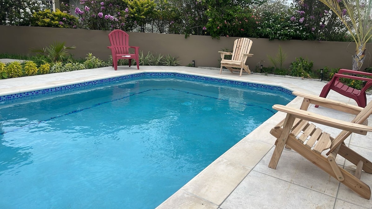 盐水泳池、郁郁葱葱的花园,步行5-10分钟即可抵达海滩