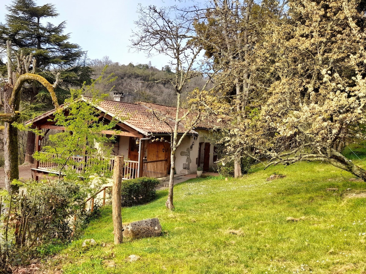 Petite maison de 20 m2 , en pleine campagne. Restaurée avec soin, elle comprend un séjour équipé d'un canapé lit 2 places, d'une kitchenette et d'une salle de bain chaleureuse type chalet. Elle dispose d'un poêle à bois. Elle profite d'un espace ombragé équipé d'un barbecue et d'un salon de jardin et d'un espace qui s'ouvre sur un large paysage de campagne. Un ruisseau longeant la praire, des chemins de randonnées et le village médiéval à proximité invitent à la balade .