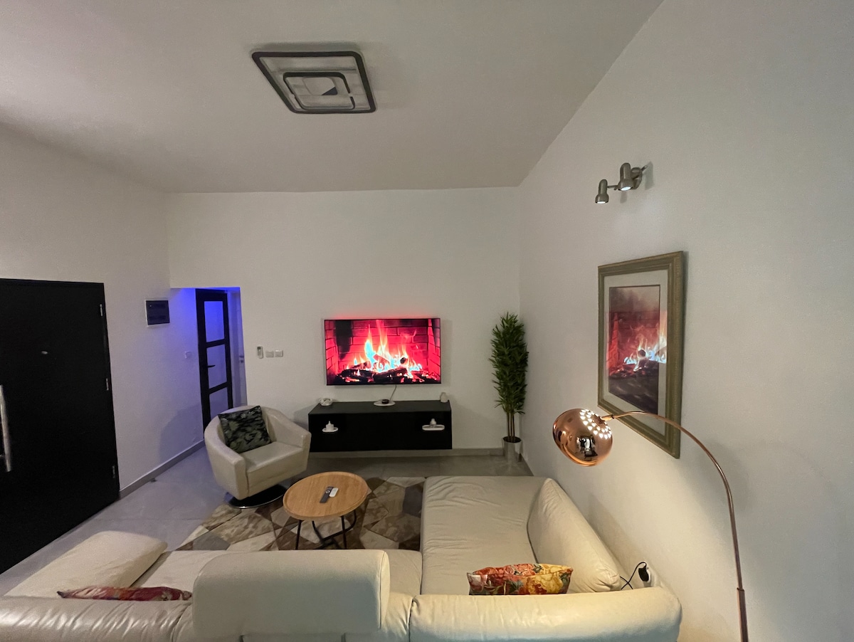 GROUPE ÉLECTROGÈNE Bienvenue chez nous où confort et luxe se rencontrent pour vous offrir un séjour inoubliable ! Vous résiderez dans l’appartement A d’un immeuble Cosy et calme, idéalement situé près de la route et du centre-ville. Climatisation ds tout le logement. Cuisine équipée, 2 chambres avec sdb, eau chaude, charmant living, terrasse et coin repas. Parking gratuit, WIFI, TV canal +, IPTV, concierge 24h, Compteur électrique PRÉPAYÉ à recharger Nombreux commerces à proximité