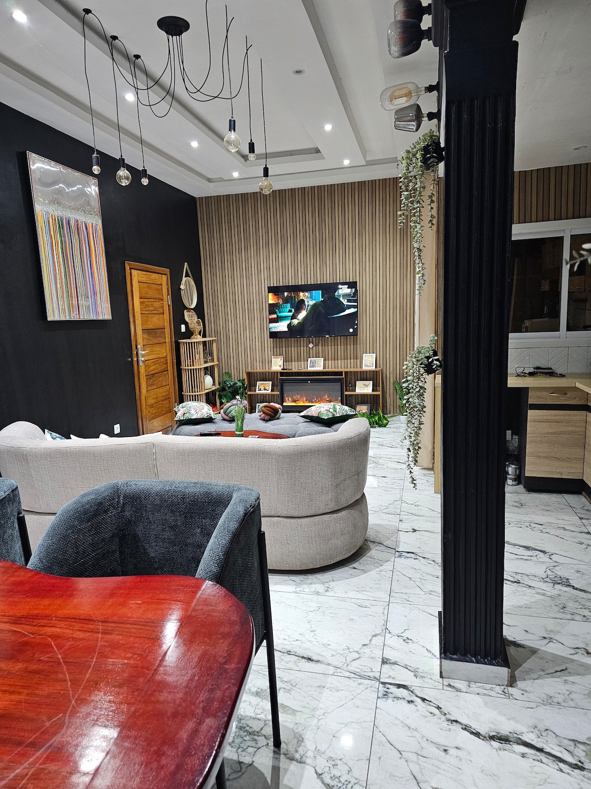 Très vaste hébergement élégant et calme, parfait les couples, familles et pour les groupes au centre de Bonapriso, 3 minutes de maison H ou Falaise Bonapriso et 2 minutes du Yard Sécurisé, entièrement équipé, moderne, spacieux et confortable. Choisissez un environnement propre, saint, sécurisé avec un assistance sur mesure et un concierge disponible H24.