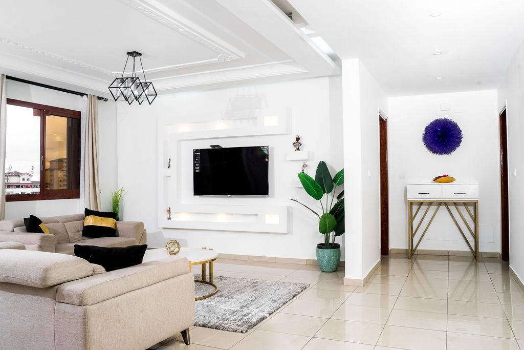 Appartement meublé de deux chambres situé à Makepe, Douala, en bordure de route. Complètement équipé, il est idéal pour les cours et longs séjours. Équipé de deux balcons, internet illimité haut débit (fibre optique), Canal Sat, une Smart TV avec Netflix, Amazone Prime et YouTube intégrés, sécurité 24/7, caméras de surveillance dans l’immeuble, parking gratuit, ballon d’eau chaude, machine à laver, cuisine équipée, climatiseurs dans toutes les pièces, deux ventilateurs, groupe électrogène.