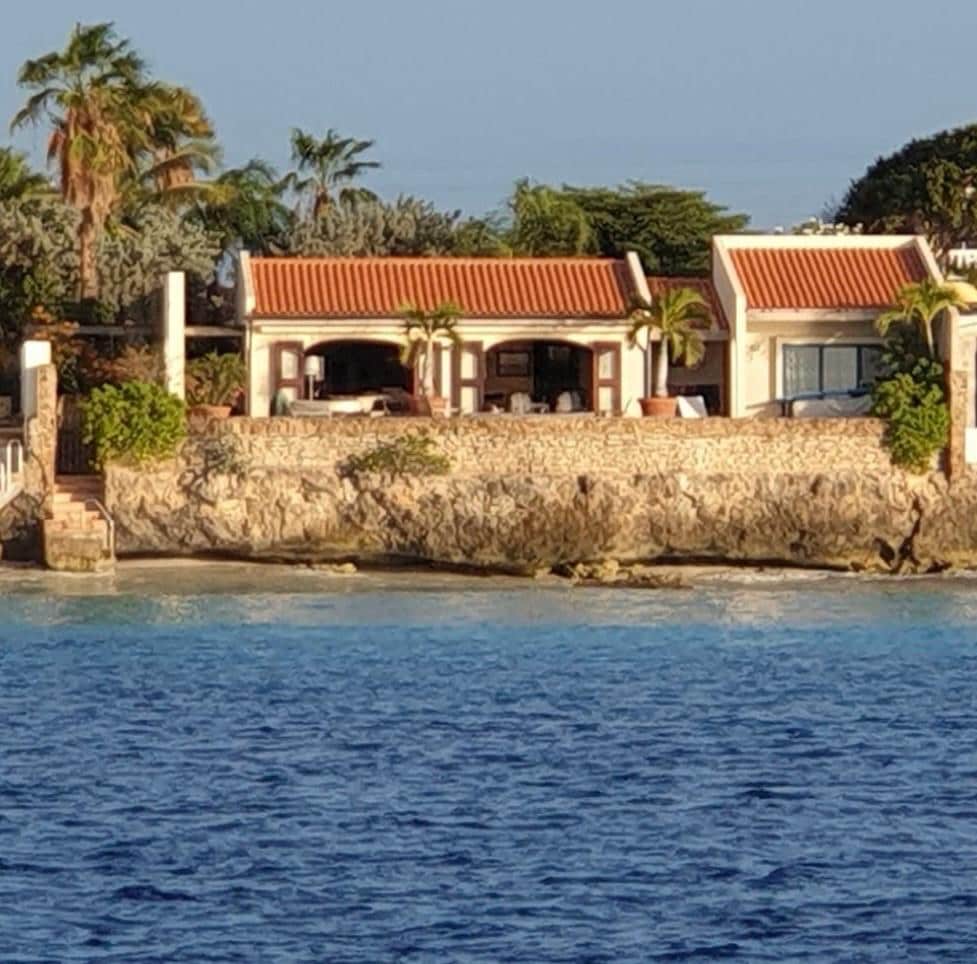 This luxurious oceanfront villa is ideal for divers, surfers and families! Oceanfront (easy access) with beautiful reef in front of the house, great dive shop (courses all ages and levels) next door and short walk to Kralendijk's centre. 3 bedrooms, 3 bathrooms. Large open kitchen area, fully equipped. Air-conditioning in all rooms. Communal pool. Large outside area for lounge and also big wooden table and bbq to enjoy outside dining the Caribbean way!