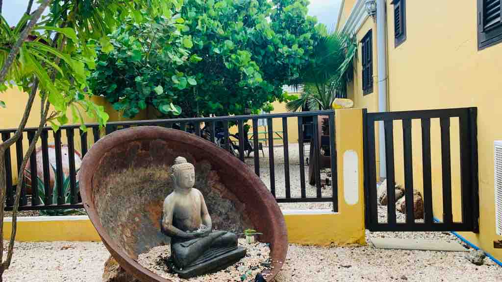 The Woodz Bonaire studio has a lovely veranda with a seat, a box spring bed and a complete bathroom with rain shower with warm water. The kitchenette includes a fridge freezer, Nespresso machine, toaster, egg cooker and kettle. You can rent a 2-burner induction hob for a small fee, which you can do on site. We do not have beach towels, you have to bring your own. To cool down while sleeping, the studio has a ceiling fan and an inverter air conditioning.