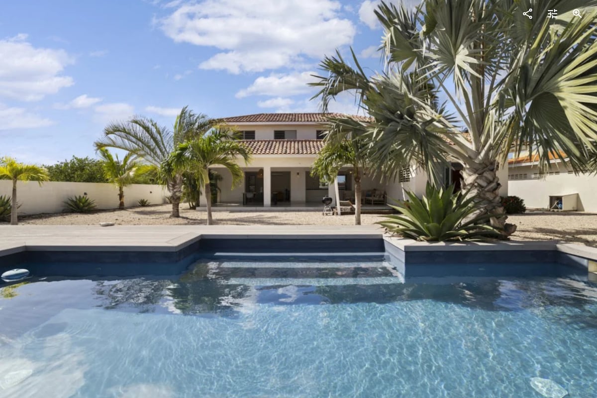 Forget your worries in this spacious and serene space. 10 minutes from the airport and 5 minutes from town by car. The villa location is in the upscale neighborhood of Sabedeco which offers more privacy to families. The beautiful villa has a large private swimming pool, sundeck with outdoor dining table. lounge chairs, and sitting area. Enjoy dining outside or relax as you watch the parrots fly by. Walk a few blocks to some of the best dive & snorkel sites on the island, Andrea 1 & II.