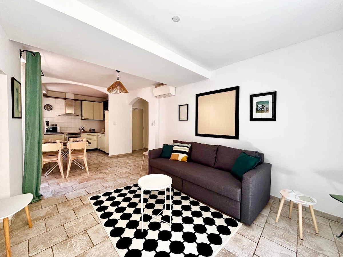 In the nicest and most touristic part of the town, you will find a lovely F2 apartment, LOFT industrial style entirely renovated! The apartment is located in a pedestrian street, close to all the shops and best restaurants in town. You also are at 5 minutes walking from a really nice beach! The apartment is located at 150 meters from Bonaparte House, at 200 meters from the city hall, at 200 meters from the Saint-François beach and at 350 meters from the Convention Center.