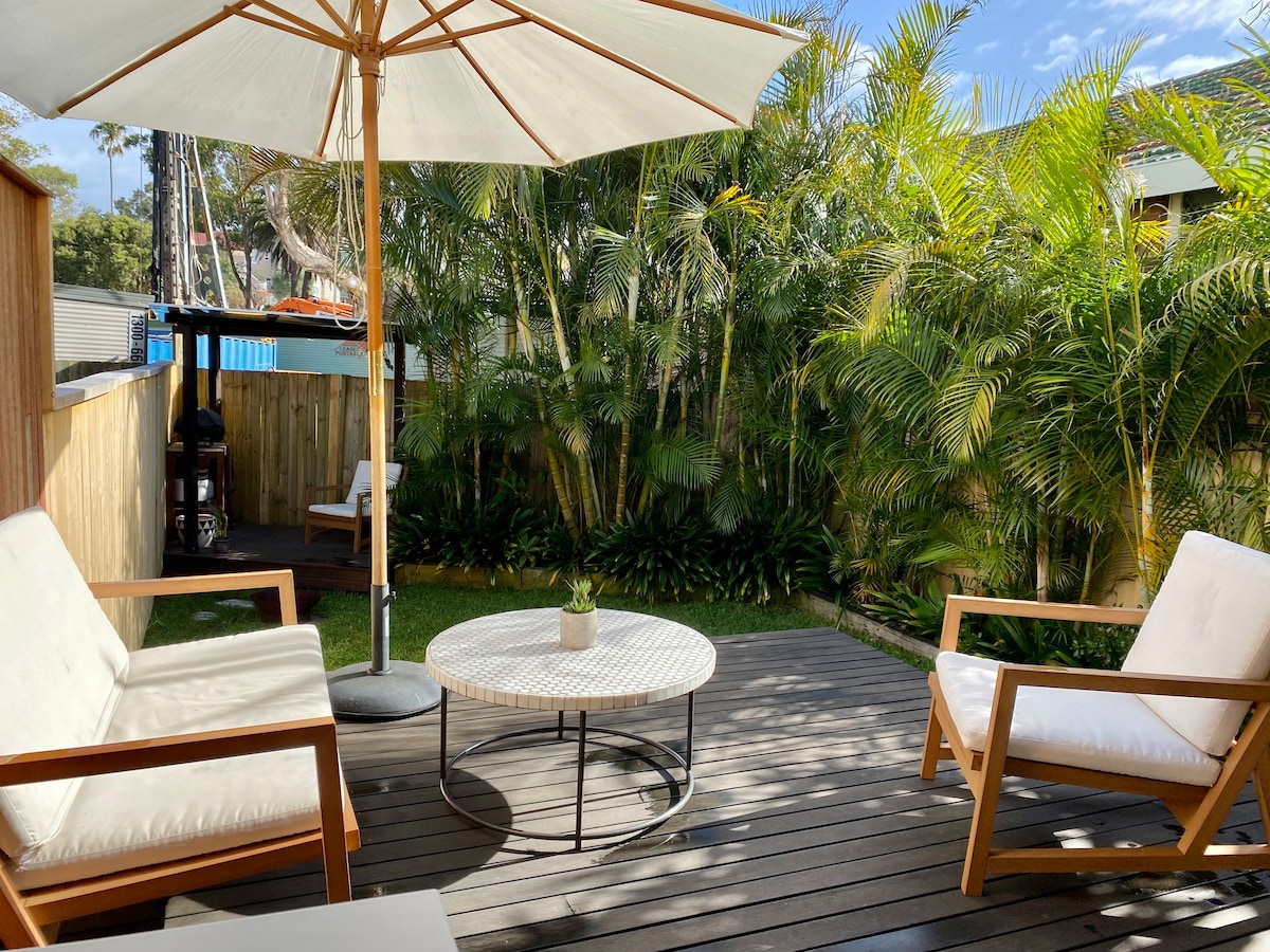 A peaceful garden Studio with private entrance and courtyard. Short walk to Collaroy Beach & rock pool, Long Reef Beach, Headland, Marine Park, cafes, restaurants, supermarket, clubs, a golf course & tennis courts. Bus stops to Manly, Palm Beach and Sydney CBD are a 10 min walk to Pittwater Rd. A private undercover area has a BBQ and daybed. The Studio includes separate kitchenette, laundry facilities and separate bathroom. Combined bedroom, dining and comfortable TV lounge space.