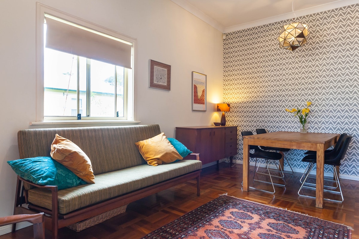 Our charming historic Victorian terrace home is fully equipped and in a fantastic location close to all Sydney offers. Located in the heart of vibrant Darlinghurst, you’ll be surrounded by cafés, galleries and theatres. Enjoy a stroll through Hyde Park to the CBD or take in harbour views from the Royal Botanic Garden and Opera House. Dining hotspots in Potts Point and Kings Cross are nearby, with Bondi Beach and Watsons Bay just 15 minutes away. Easy access to bus and train stations.