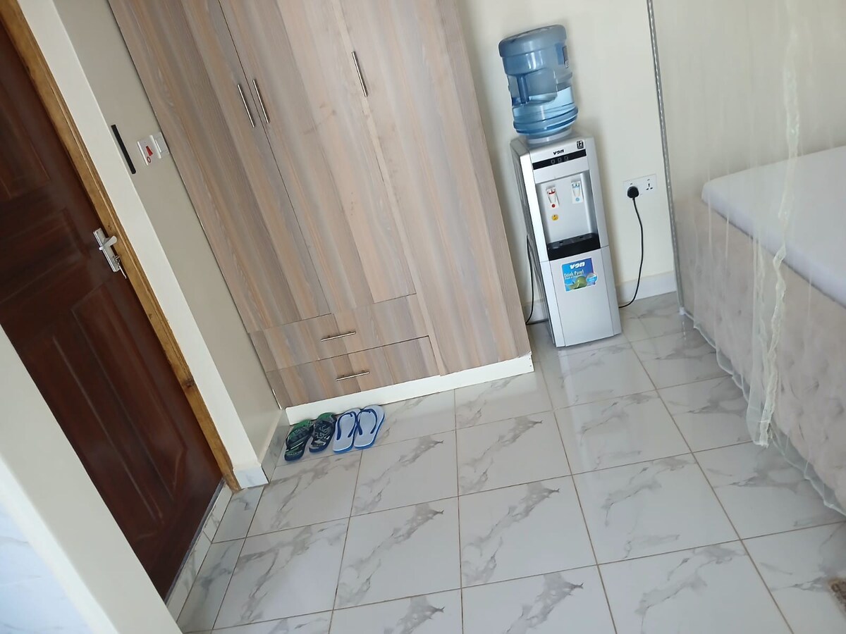 Welcome to a charming contemporary 1 bedroom guest house... making 1 bedroom, 1 washroom, open kitchen and maximum privacy in the house. Just blocks away from amazing restaurants, bars, cafes, university, hospitals and the main Bondo Usenge road. Perfect for getaways,business trips, work from home alternatives while experiencing what Bondo has to offer. Peaceful mornings, afternoons and evenings await you to this unique experience. Full kitchen, hot shower, dstv, Wi-Fi ,cctv, free parking.