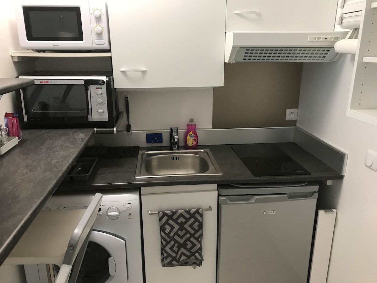 Cosy studio (27 sqm) in an lively and cosmopolite neighborhood located in the north center of Paris, in a building from 18th century. The place is quiet as the studio is on the courtyard side, on the 1st floor (2nd floor for US) Description : - living area with couch, - open kitchen - bed area - separate bathroom with large shower and toilet Towels are provided but not replaced during the stay Only one duvet/blanket is provided Body gel and shampoo not provided