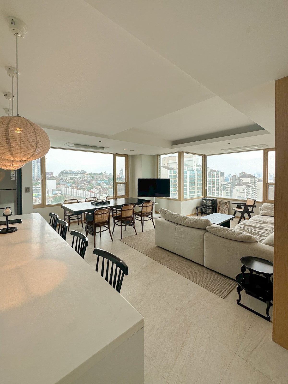 Seoul Skyline from Top-floor Panoramic Landmark : Hangang River, Seoul N Tower, and Lotte Tower On the Move: Walk 10 secs to Bongeunsa Station (Line 9), 10mins to Samseong Station (Line 2) From Airport: Take AREX and Line9, or Airport Bus Urban Essentials: COEX Shopping Mall, Grocery Shops nearby Cultural Connection: 5 mins to the historic Bongeun Temple (Oldest temple: Founded in 794) Design Touch: This place was designed and renovated by K-pop Star, Got7