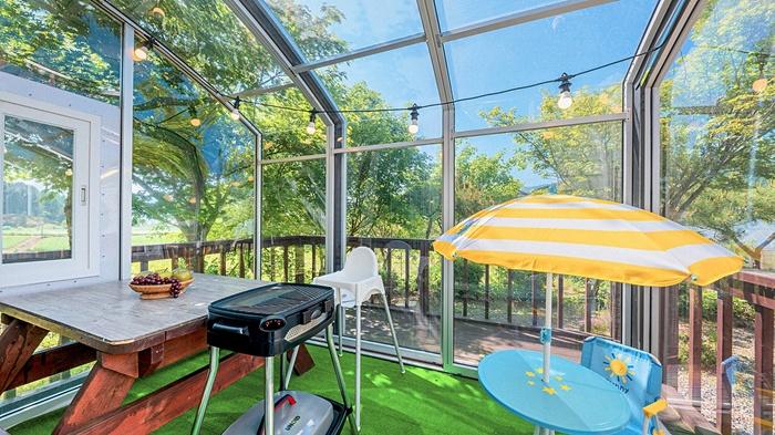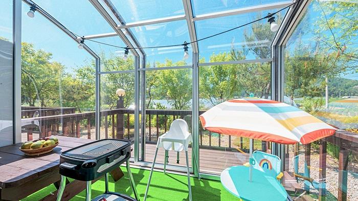 Galaxy X Hotel-type caravan glamping is located in Pyeongchang-gun, Gangwon-do, Korea. You can enjoy hotel-style caravan glamping with future-oriented designs and facilities, and you can feel the healing of cherished memories in the overwhelming natural scenery. You can eat Korean barbecue at a low price and breakfast is free. Galaxy X Hotel-type Caravan Glamping and Pension has camping outside and hotel-style bedrooms and bathroom kitchens inside.