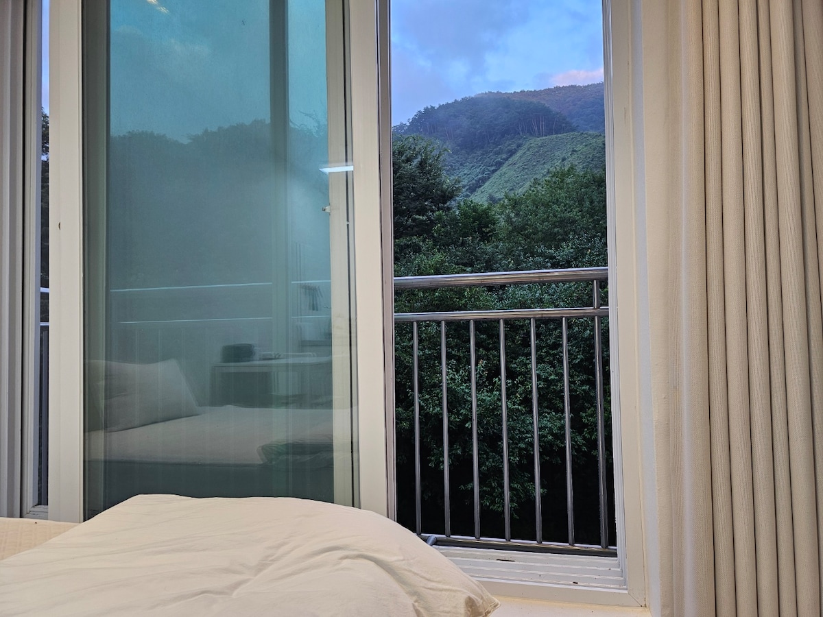 ๊ฐ์๋์ ๊นจ๋ํ ์์ฐ ์์์ ์ผ๊ณผ ์น์ ์ ์๋์ง๊ฐ ๊ฐ๋ํ ํก์ฑ1ํธ ํ์ฅ์คํ ์ด, ์จ์๊ฐ(็ฉฉ้คๅฎถ)์ ๋๋ค. ์ ํ์ฅ์ ํธ์์ฑ์ ๊ฐ์ถฐ ๋ฆฌ๋ชจ๋ธ๋งํ์ฌ 4~7๋ช ์ ๋์ ๊ฐ์กฑ, ์น๊ตฌ๋ค์ด ์๋ฝํ๊ฒ ์ด ์ ์๋ ๊ณต๊ฐ์ ๋๋ค. ์์นจ๋ง๋ค ์จ๊ฐ ์์๋ฆฌ์ ์ ์ ๊นจ๋ฉฐ, ๊ฐ์ธ ๋ ์ ์์์ง๋ ๋ณ๋น์ ๊ฐ์ํ ์ ์์ต๋๋ค. ์ฒญ์ ์์ฐ์์๋ง ๋ณผ ์ ์๋ค๋ ๋ฐ๋ง๋ถ์ด์ ๋ ธ๋ ์ข ๋ฌ์, ์๋ฌ์ด ํจ๊ป ์ฌ๋ ๊ณณ์ ๋๋ค. ์ง ์ฃผ์ธ์ด ์์ ๋ฐ๋ก ์์ ๊ฑฐ์ฃผํ์ฌ ๊ฒ์คํธ์ ์๊ตฌ์ฌํญ์ ์ฆ๊ฐ์ ์ผ๋ก ๋์ํด ๋๋ฆฝ๋๋ค. ํนํ ๊ณ ๊ธ์ปคํผ์๋์ ์์คํ๋ ์๋จธ์ , ๊ฐ์ข ์๋ ๋ฅ๋ฅผ ๋ฌด์์ผ๋ก ์ ๊ณตํด๋๋ฆฌ๋ฉฐ, ์๊ธฐ์ธ์ฒ๊ธฐ ๋ฐ ๋์ฅ๊ณ , ์ ์๊ธฐ, ๋นํ๋ก์ ํฐ, ์ธํ๊ธฐ ๋ฑ ์๋น๋์ด ์์ต๋๋ค. ํธ๋ฐฑ์์กฐ, ์ฌ์ฐ๋(์ฌ๋ฆ์ฒ ์ ์ธ)๋ฅผ ์ฆ๊ธธ ์ ์์ผ๋ฉฐ ๋ฐ๋ฒ ํ๋ฐํฌ, 100์ฌ ํ์ ๋์ ์๋๋ฐญ๊ณผ ๊ทธ๋ค, ํฌํธ, ์ท๋ ์ค๋น๋์ด ์์ต๋๋ค. ์ฌ๋ฆ์๋ ์์ ๋ฐ๋ก ์ ์ฒญ์ ๊ฐ์ธ์์ ๋ฌผ๋์ด๋ฅผ ํ ์ ์์ต๋๋ค.(์ฌ๊ฑด์ด ๋ฌ๋ผ์ง ์ ์์ผ๋ ๋ฏธ๋ฆฌ ๋ฌธ์๋ฐ๋๋๋ค. ๋ณ๋์ ๊ฐ์ด์์์ฅ์ ์ด์ํ์ง ์์ต๋๋ค)