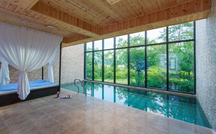 客人喜欢Bongpyeong-myeon度假屋的厨房、无线网络和游泳池