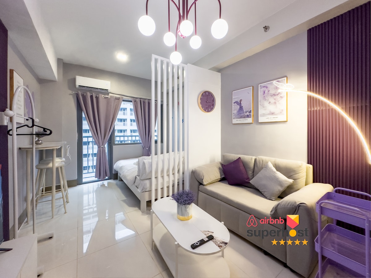 华人折扣 |SMDC Fame 泳池公寓 |近CBD |紫色主题 |100兆 Wifi |可四人入住
