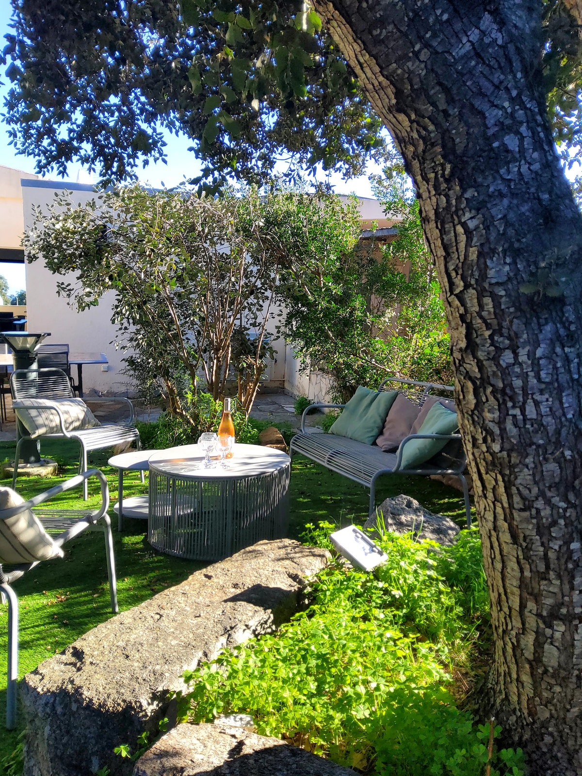 propriété privée à 5 mn de la plage de Maora-beach, et du golf de Santa Manza, 5 mn en voiture du centre-ville de Bonifacio, 10 mn en voiture du lagon de Piantarella, 25 mn des plages de Palombaggia et Santa Giulia et 20 mn de l'aéroport de Figari, le domaine est fermé et sécurisé, entourer de verdure, endroit très calme et reposant. avec deux chambres lits en 140, salle de bain , wc indépendant, coin cuisine, une climatisation, lave linge à l'extérieur, terrasse couverte avec une plancha.