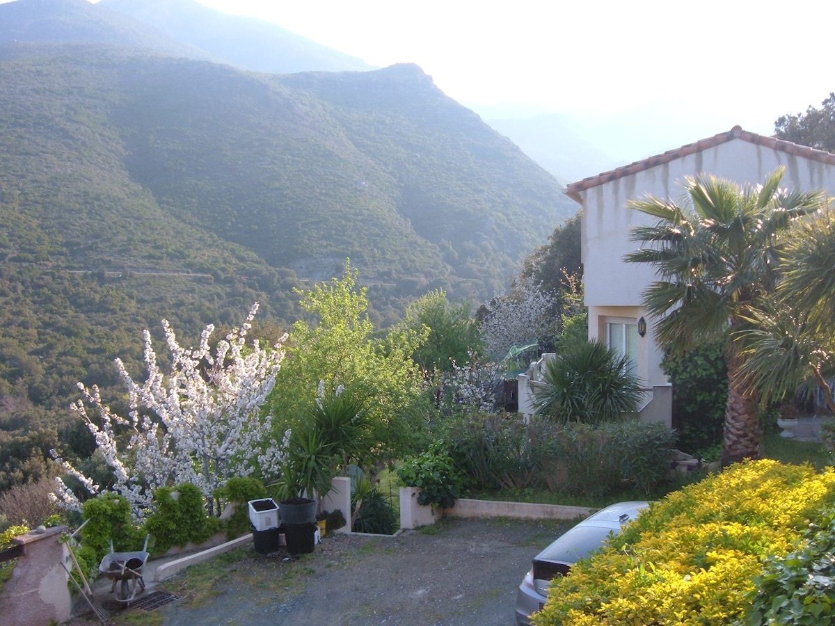 C'est une construction âgée de 500 ans, il s'agit d'un ancien pressoir à vin appelé "U FRAGNU", ce bâti est une construction typique et entièrement construite avec les pierres du village, elle se trouve au milieu d'une ancienne vigne avec son petit ruisseau qui coule à ses pieds. Vous pourrez profiter de sa terrasse privative couverte, de son jardin très ensoleillé avec vue sur nos belles montagnes ainsi que son bassin de baignade en pierres d'où coule sa cascade qui vous apaisera.