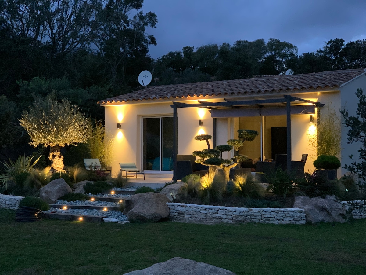 Très belle villa. Edifiée sur 4000m2 de terrain clos. Authentique et Contemporaine elle vous offre le confort et l'intimité que vous cherchez pour des vacances inoubliables. Sa situation géographique; a peine 2mn du Golf de Sant Amanza et 4mn du centre historique et du port de Bonifacio. Vous avez accès aux plus belles plages de l'extrême sud de la Corse;Sur la côte EST ( Vers Bastia ) St Antoine, Spérone, Piantarella, Cala Longa, Canetto, Ballistra, etc.