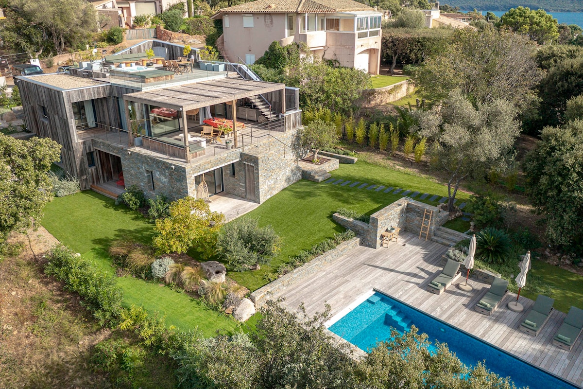 Architect's villa delivered in 2022, ideal for one or more families with children. Many relaxation areas with swimming pool, sea view rooftop with jacuzzi, summer kitchen with plancha and several terraces. The 5 bedrooms have an individual shower room or bathroom. A privileged location within the Marina di Fiori residence with access to the residence's private beach, tennis courts (5 courts) and its Marina (boat rental possible) - 500 meters on foot.