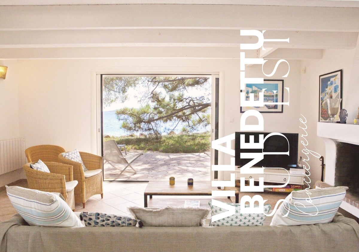 WARNING: THE CLEENING FEES, TOWELS AND SHEETS ARE NOT INCLUDED IN THE RATES (except for weekend rates). Tariff explanation in our house rules section. Air - conditioned detached house at the edge of the water (10 m from the beach) of 120 m2 on 2 floors R + 1, terrace equipped with 100 m2 view, kitchen counter and outdoor furniture, barbecue weber. 2 bedrooms, sleeps 8 max.
