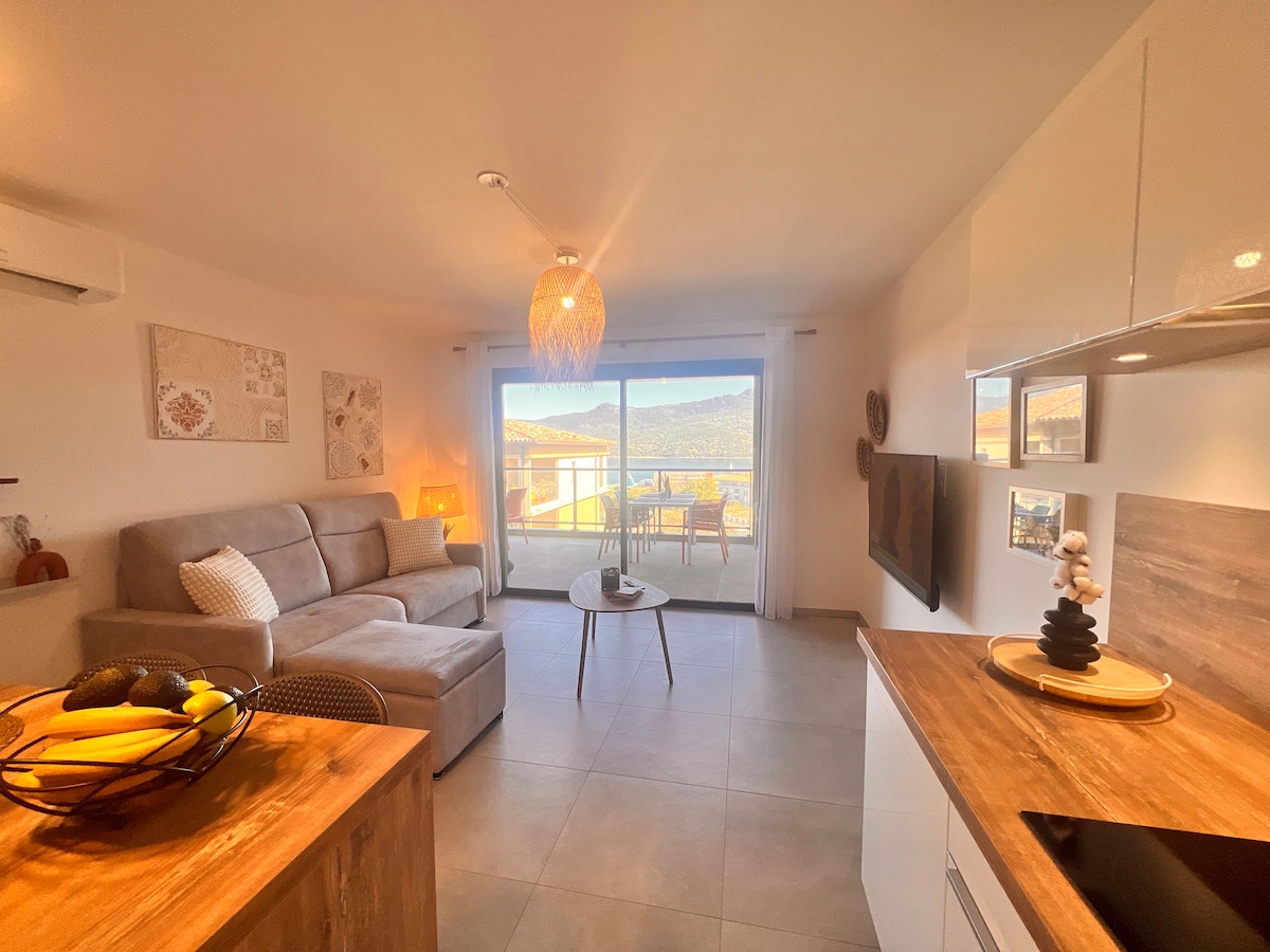 Villa de plein pied neuve avec piscine chauffée, entourée d’oliviers et vue splendide sur la mer, dans un lieu calme. À 5min des plages de Bodri. Seulement 20min de l’aéroport Calvi St-Catherine et 5min du centre d'Ile-Rousse. 3 suites parentales privées, 3 salles de bain Cuisine ouvrant sur les terrasses face à la mer et piscine. Grande terrasse face à la mer, studieux patio pour vos repas à l’abris du vent. Conçue et décorée avec beaucoup de soin. Pour que vos vacances deviennent inoubliables.