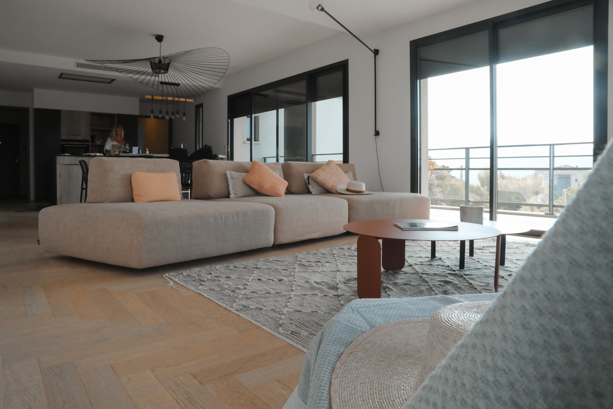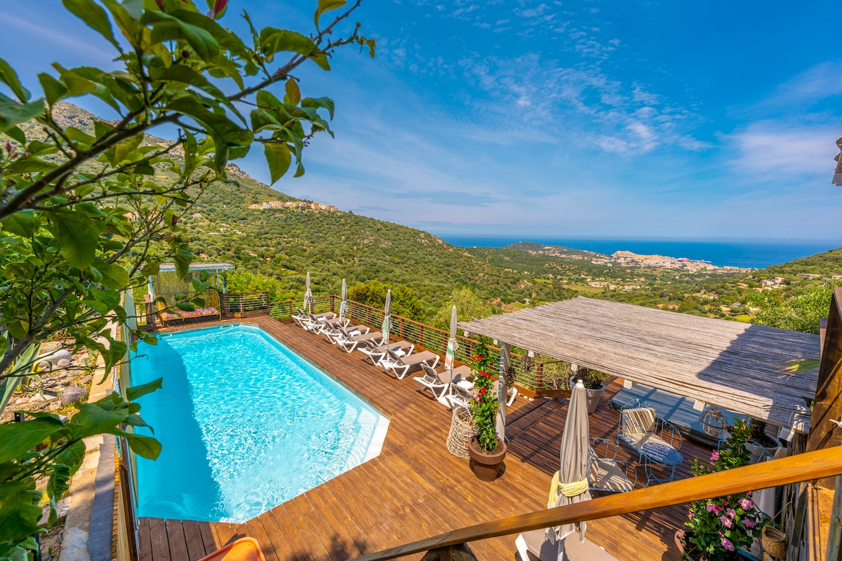 海景,游泳池,私人土地,空调,可容纳5人。