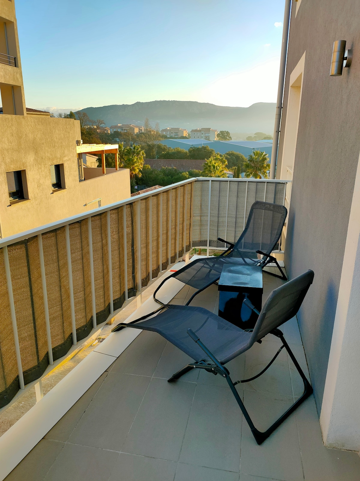 Vous serez chaleureusement accueillis dans un grand T2 meublé, en angle exposé plein sud, calme, en dernier étage, vue montagnes, aperçu mer dans une belle résidence proche des commodités, de l'aéroport, des plages de Porticcio (trois minutes en voiture). Ce logement, avec services hôteliers, son linge de maison (draps, serviettes..), ses couchages professionnels. Vous pourrez cuisiner vos repas, profiter de la terrasse de 17 m2 aménagée pour le farniente!