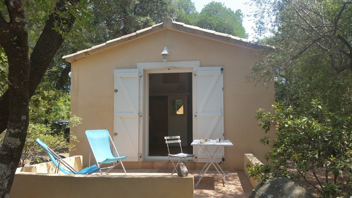 Studio 2 personnes . Situé en campagne et bord de mer, propriété privée, accès direct à la mer. Tout confort, Clim, Lave linge, M O , Draps, taies,torchons, serviettes non fournis ; Terrasse , ombragée et calme et indépendante. Parking voiture sécurisé . Propriétaire présent. Non fumeur. Pas animaux