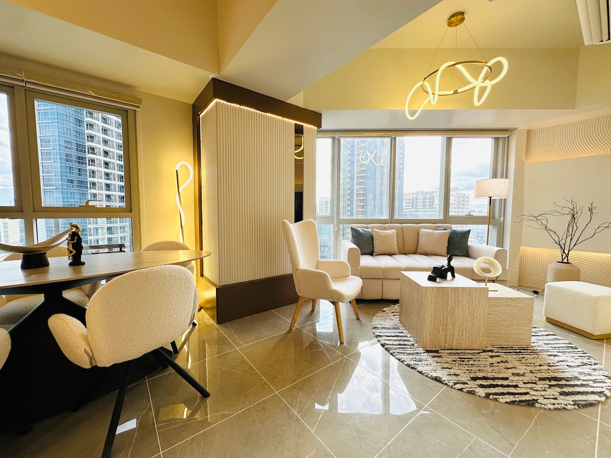 Welcome to a Unique Getaway in Uptown Parksuites BGC! Awarded as Airbnb’s Top 1% and Guest Favorite! Stay in a deluxe 1-bedroom with a balcony offering stunning city views. Located in the heart of Uptown Bonifacio, steps from international dining, shopping, and entertainment. Enjoy resort-style amenities like pools and a jacuzzi. For convenience, Landers Superstore, cafes, and more are right downstairs. Explore Uptown Mall and the first Japanese-themed "Mitsukoshi" mall just across the street.