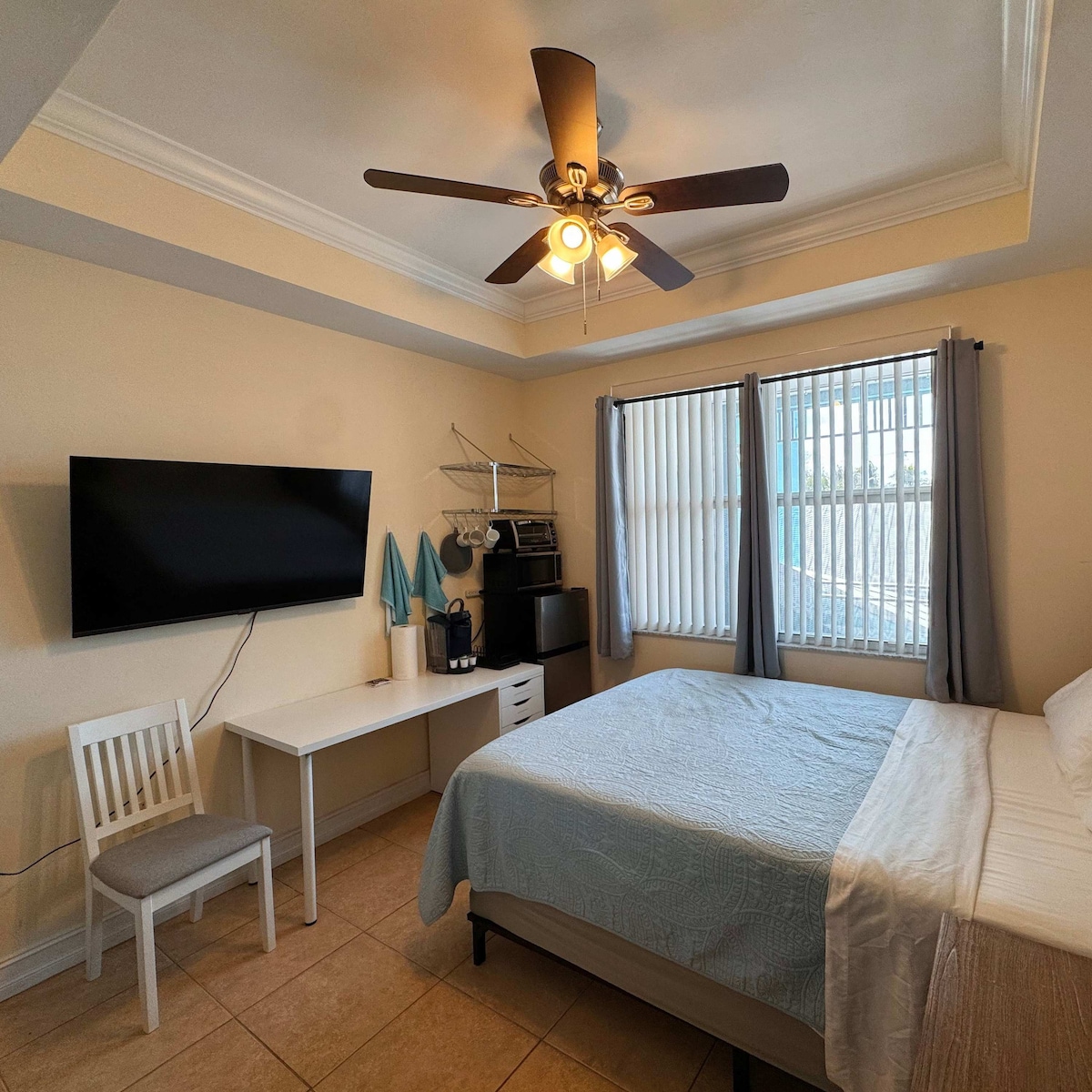• 2.1 miles to beach. 6 minute drive, 12 min biking • 600 sqft, 1st floor, 1 bedroom/1 bath • Safe & quiet neighborhood • Equipped kitchen, stocked w/essentials • Screened-in pool • Pet friendly • On-site parking (2 vehicles) • Smart TVs • On-site laundry • Fast internet • Furnished patio • Backyard garden w/ firepit • Bikes, beach equipment • Grill • Nearby boat ramp Minutes from: • State parks • Restaurants • World class golf courses • Fishing/boating • Nightlife • Naples shopping & spas