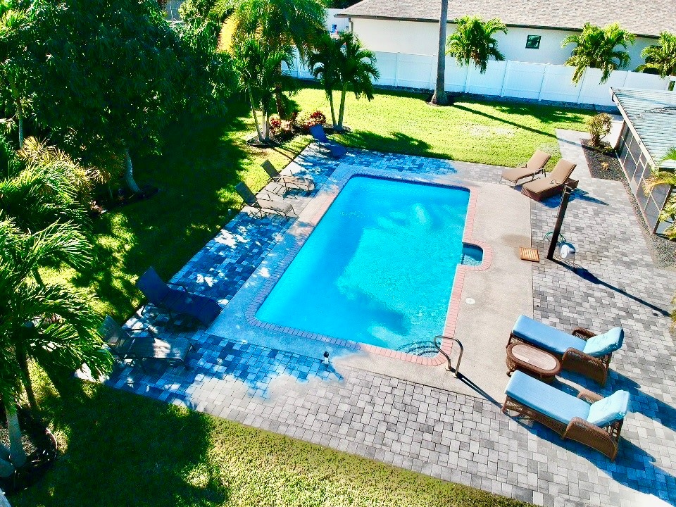 Welcome to our just renovated single family pool home in the heart of historic Bonita Springs. Less than 5 miles to the beaches. You can walk to coffee shops, parks, restaurants and all sorts of markets, etc. The living area extends outside in the huge screened lanai where we have a new outdoor sectional sofa. The pool is large and heated. A very upgraded kitchen with new soft close cabinets, quartzite counter tops & brand new appliances. It's a comfortable open concept design.