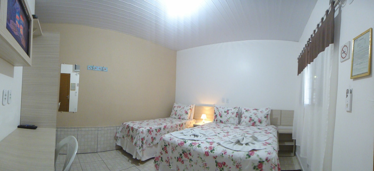 Possuímos camas confortáveis, banheiro privativo, TV via satélite e frigobar.