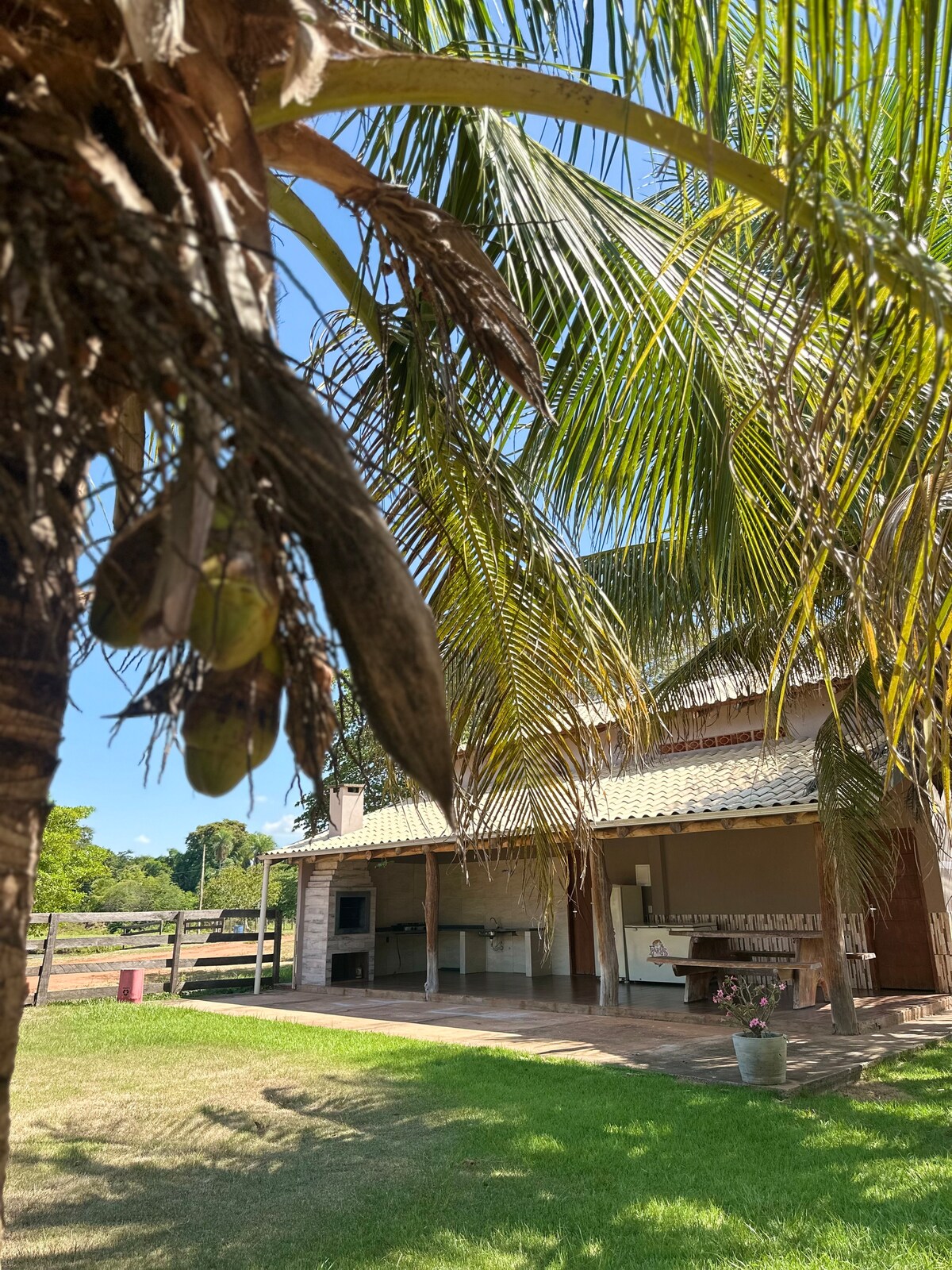 Refúgio Rústico no Pesqueiro Farias: Chalé Coqueiro 🌴 Desconecte-se da rotina e venha relaxar em meio à natureza! Nosso chalé oferece o conforto ideal para grupos e famílias, com 2 suítes privativas climatizadas. Aproveite momentos inesquecíveis em nossa varanda gourmet, equipada com churrasqueira, fogão, geladeira e freezer para total autonomia. Com Wi-Fi e um ambiente acolhedor, somos o destino perfeito para quem busca lazer, pescaria e tranquilidade. Sinta o frescor do campo! ✨