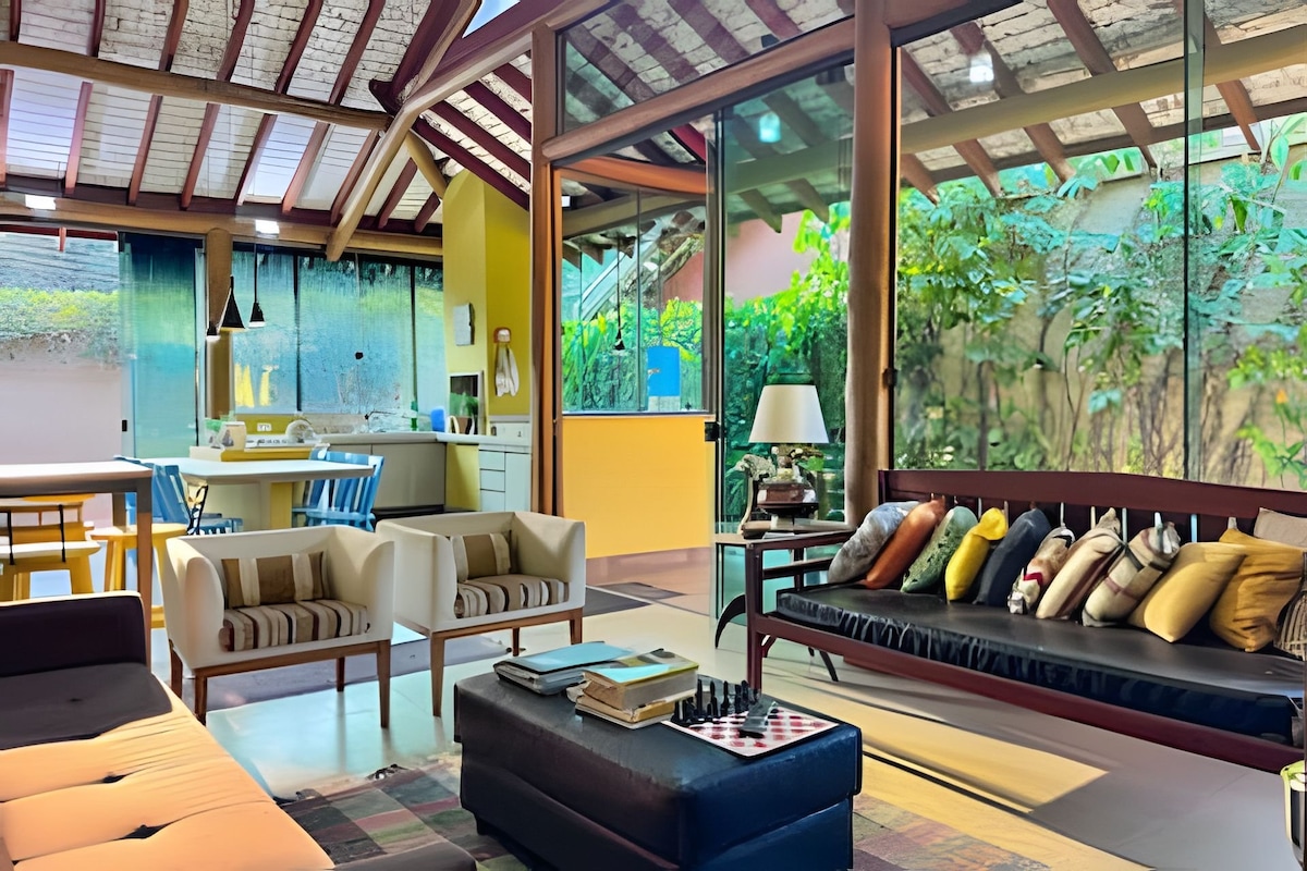 Viva momentos inesquecíveis neste lugar único e ideal para famílias , possuímos 4 Suites e uma delas é um quarto infantil decorado e cheio de atrativos para as crianças . Possuímos uma linda vista para área de reserva , um conforto com muito estilo , uma rusticidade e integração com a natureza que encantam todos os hóspedes. A casa está muito bem equipada para atender até 14 pessoas .