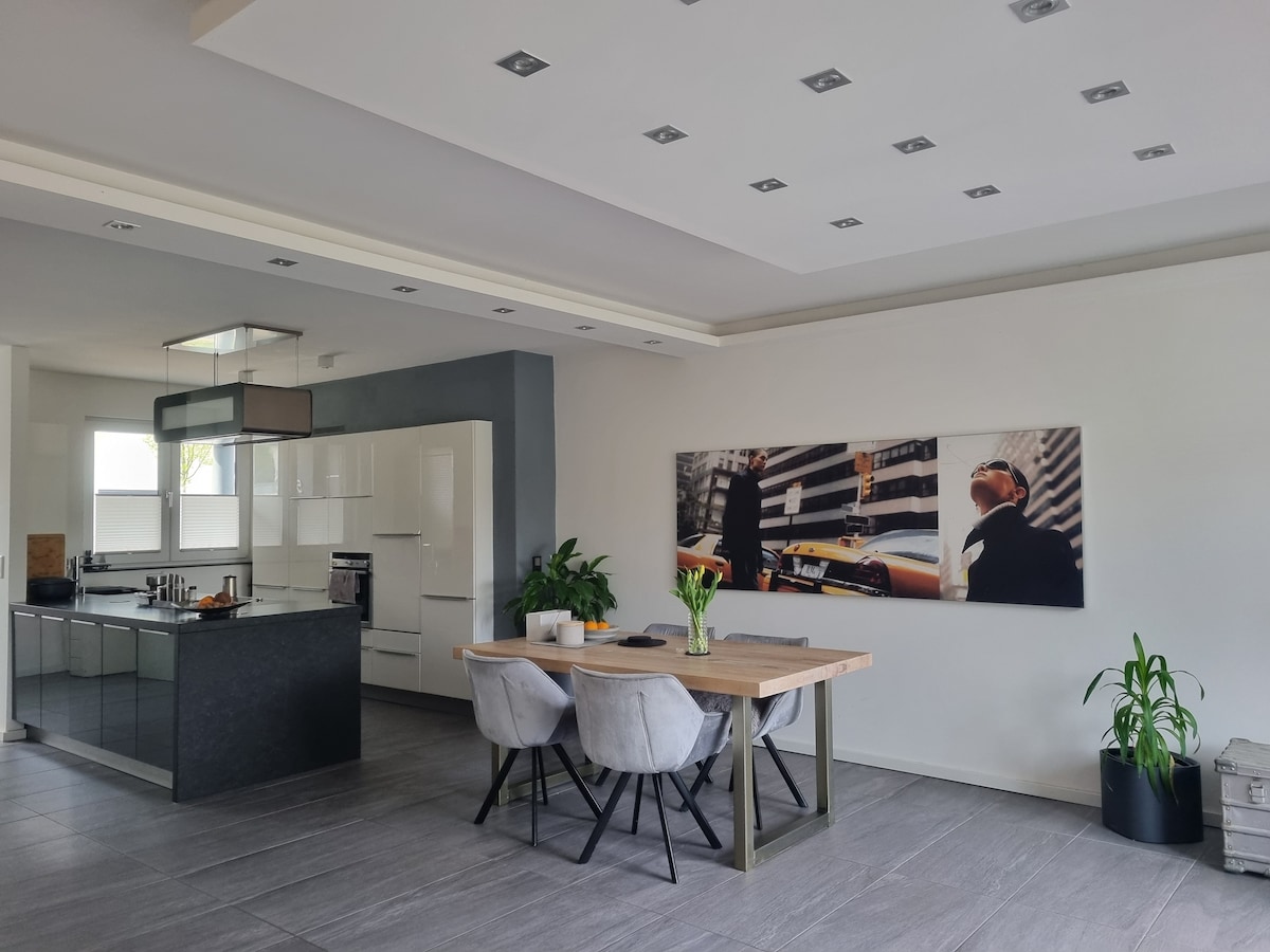 Modern und liebevoll eingerichtetes Haus in Troisdorf. Unser möbliertes Haus im schönen Troisdorf besticht durch eine neue und gehobene Innenausstattung als auch optimale Lage mit sehr guter Anbindung: 10 Minuten vom Flughafen CGN, 30 Minuten zur Messe Deutz und 20 Minuten vom Bonner oder Kölner Zentrum entfernt. Zwei großzügige offene Schlafzimmer und Essbereiche und modernen Küchen und zwei Tageslicht-Bäder mit Dusche und schönem Design sorgen für ein Wohlfühl-Ambiente.
