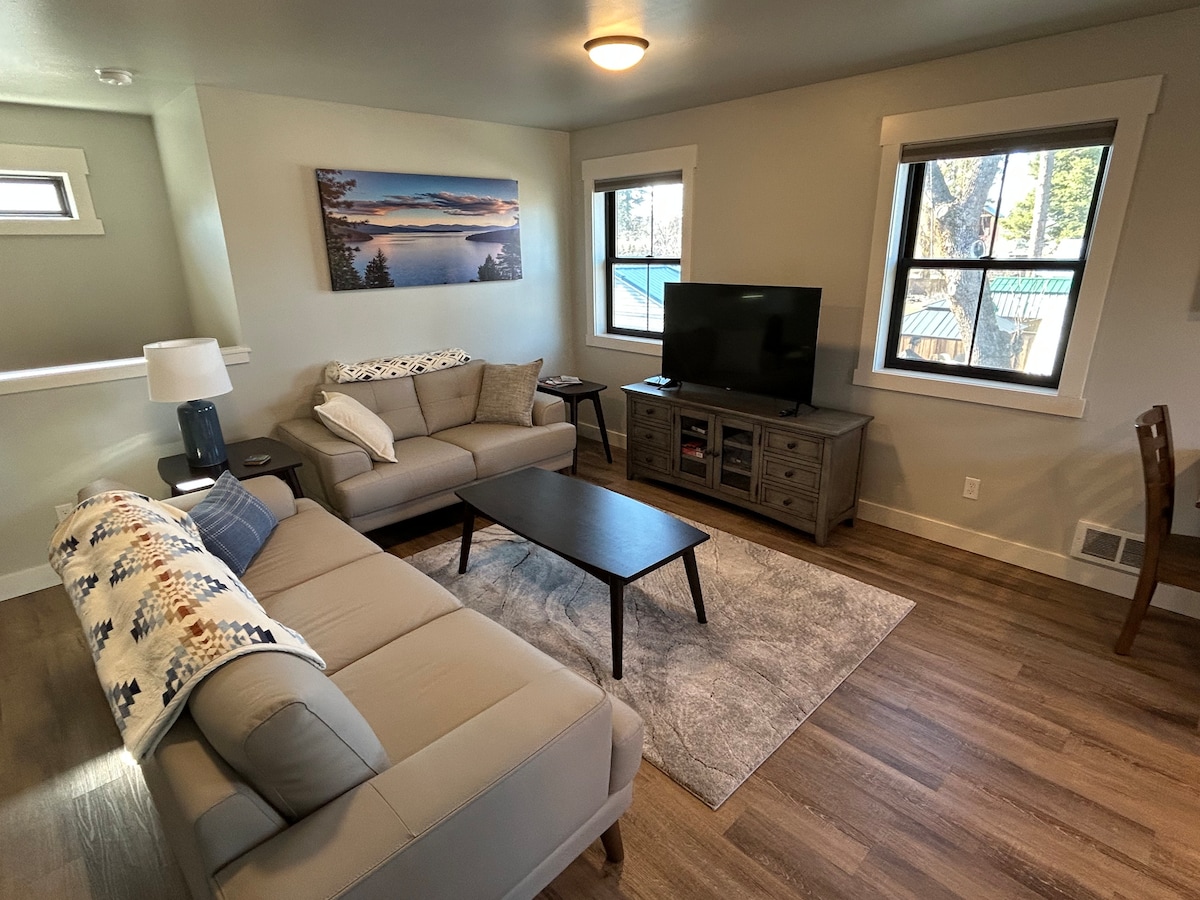 • Newly Built • 5 minutes to downtown Sandpoint, Lake Pend O'Reille, the base of Schweitzer Mountain Ski Resort, or Bonner General Hospital • Free SPOT bus stop one block away • Fully stocked kitchen • Full size washer/dryer + detergent provided • Electric fireplace • Bright, clean, cozy • Hand milled trim, countertops, and finishes • Large deck w/ lounge chairs and grill • TV w/ Roku + fast WiFi • FRAGRANCE FREE, 100% cotton linens, cleaned w/ natural products, low-tox