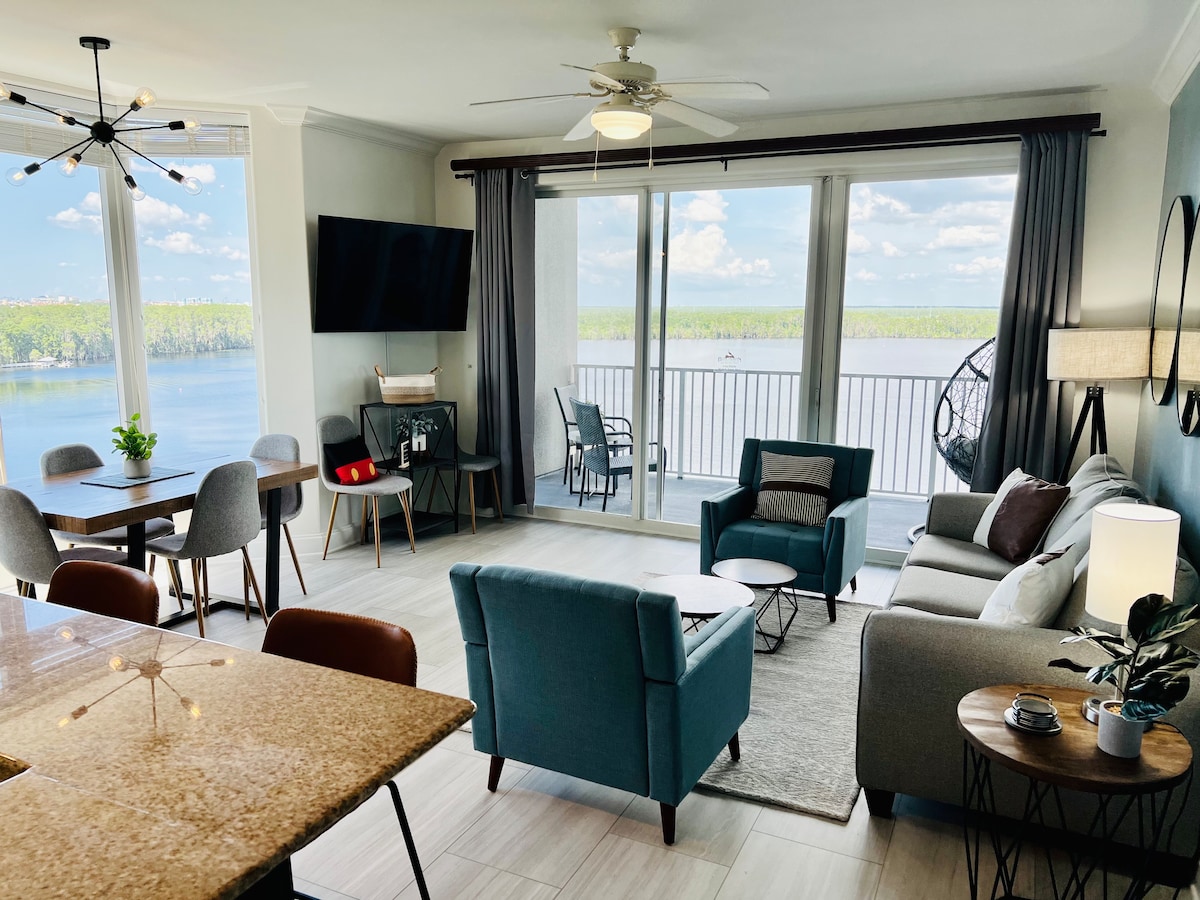 "Airbnb's Choice" - When it was time for Airbnb to select a home to feature in their Instagram ad campaign, of the hundreds of homes in the Orlando area, they selected this one. "Shouldn't it be your choice as well?" Tastefully and professionally decorated - This is a spacious one-bedroom, two-bath lakefront condominium located at the Blue Heron Beach Resort. It's conveniently located just two blocks off I-4 and just 1 mile from the entrance to Disney with breathtaking views of Lake Bryan.