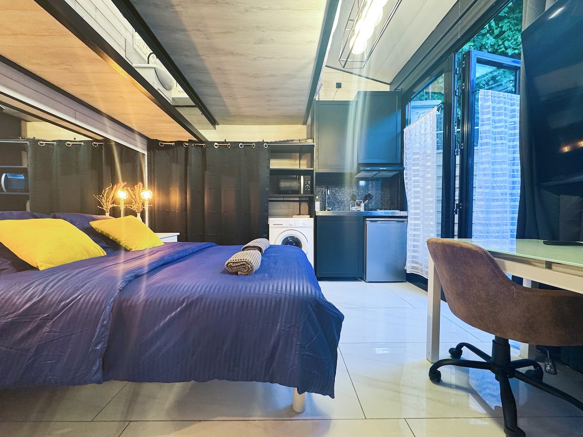 Welcome to this beautiful, brand-new apartment, nestled in a peaceful residential neighborhood, perfect for a relaxing getaway near Paris. This modern retreat features a fully equipped open kitchen and a bright living room with a comfortable sofa bed and a smart TV. The bedroom, with a high-quality double bed, ensures restful nights, while the spacious bathroom offers a relaxing space after your days of exploration.