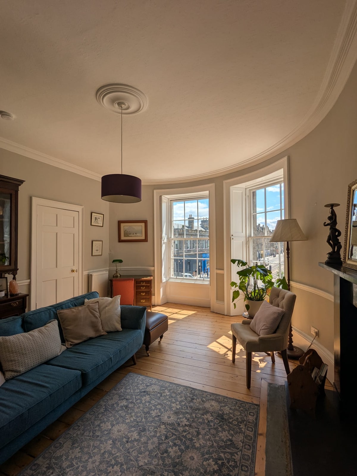 Stylish Georgian Townhouse flat in Edinburgh’s New Town UNESCO heritage site dates from 1825. Being 2 floors up, there are amazing views northwards. This quiet apartment is ideally situated close to the heart of the city - walking distance to most major attractions including Holyrood Palace, Playhouse Theatre, Princes Street and the Old Town. King-size bed (UK), bath & shower, comfortable living area, fully equipped kitchen with dining area for 4 people. NB - there is no lift in building.