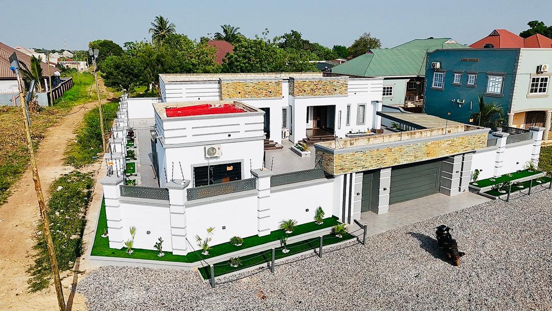 This stylish house comprises of 6-bedrooms, 8 baths in addition to a kitchen, living room, family, room, dining room and an office is located 5 minutes from St. James SHS at Ghana Post address BS-0380-8826. The house is ideal for visitors from all over the world traveling to Sunyani for business or pleasure and a great destination for honeymooners. Rent is $199 per day for 6 self contained bedrooms. Master bedroom is excluded and not part of the six bedrooms. Pool usage cost $150 per week.